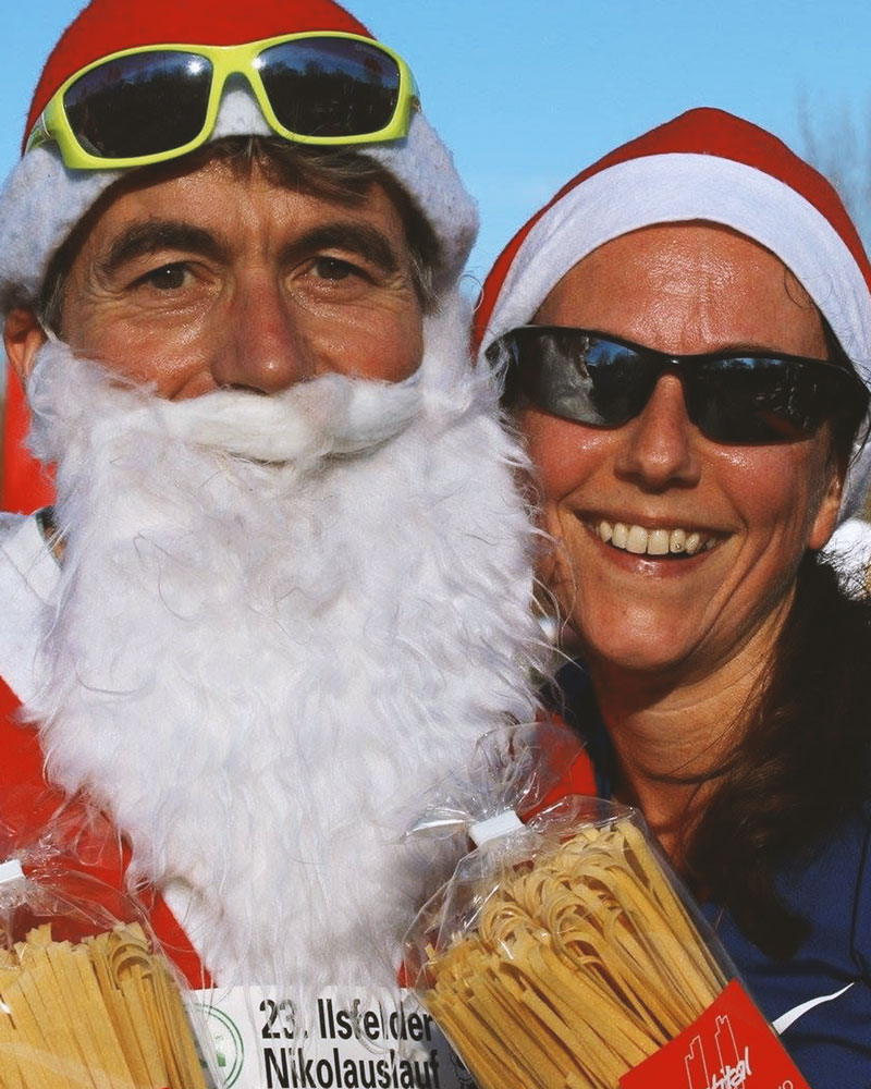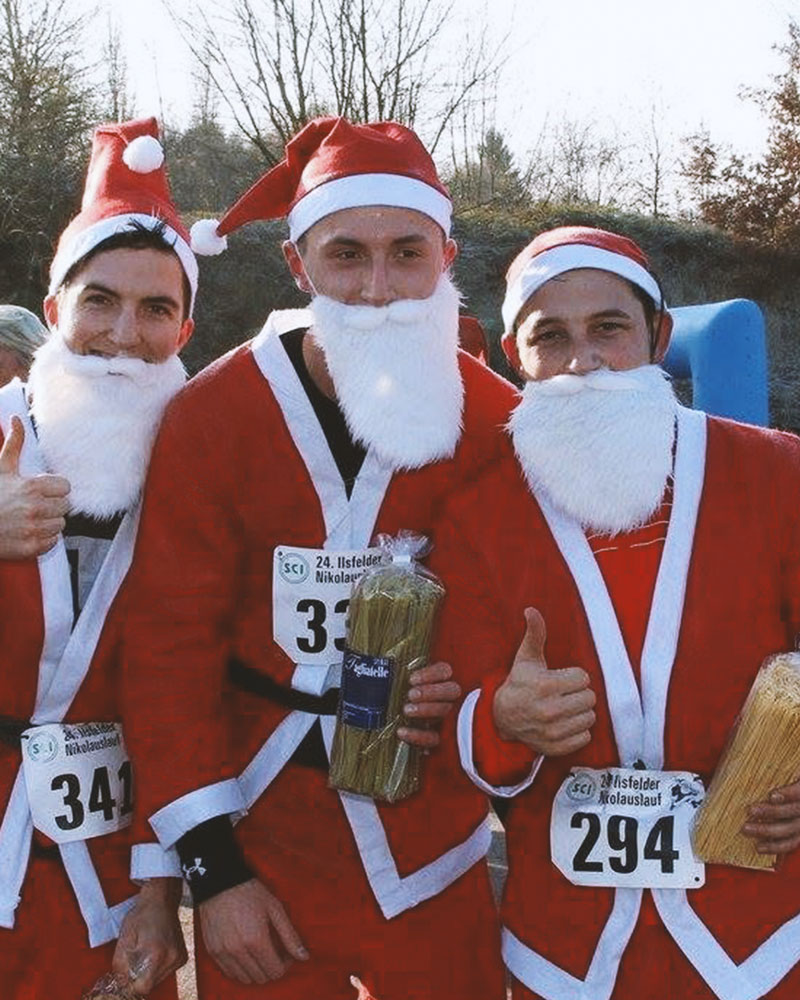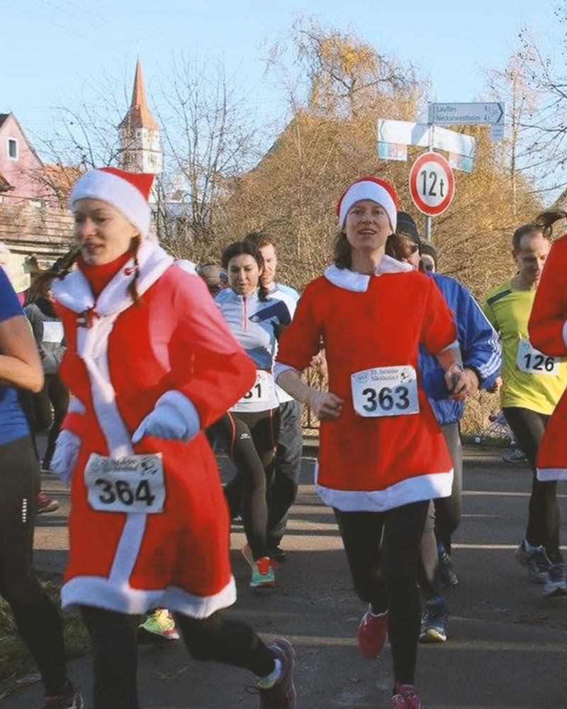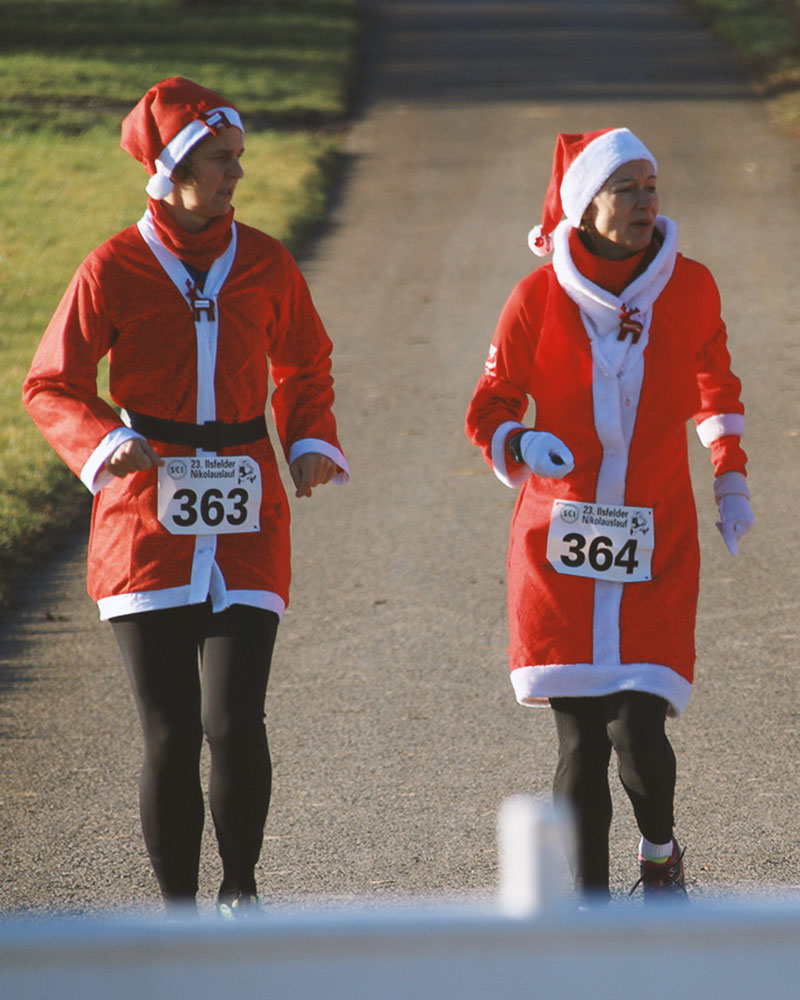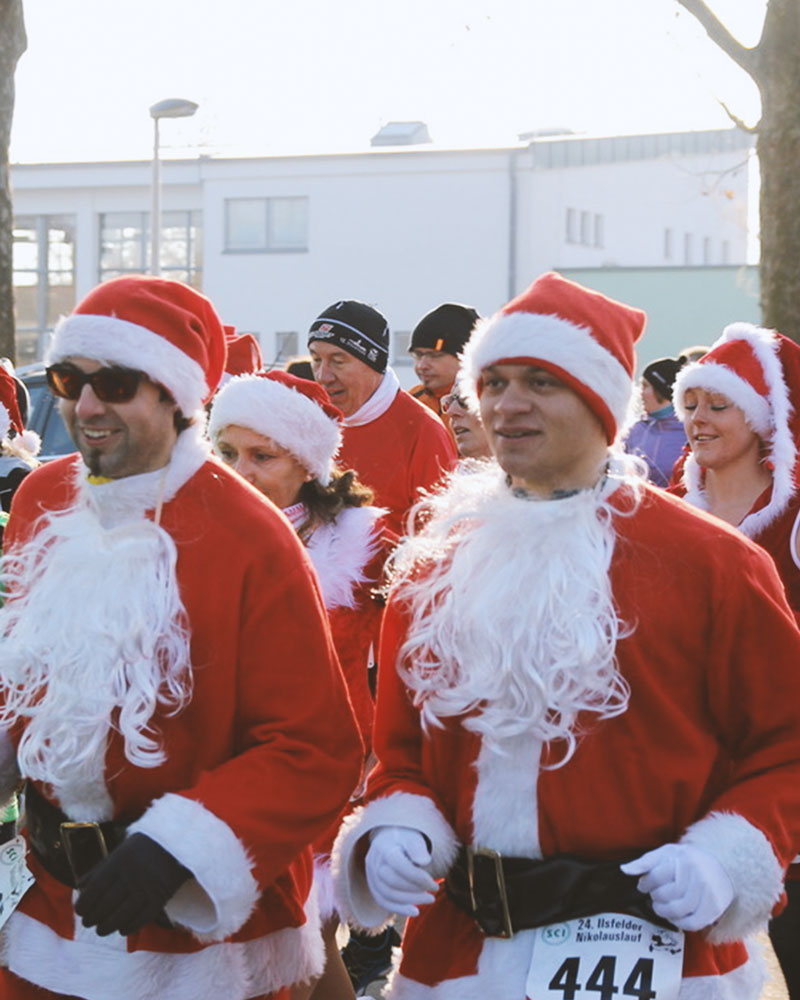 Der 1. Läufer*in im 5 km und im 10 km Lauf, der in einem Nikolaus-Kostüm die Ziellinie überquert, bekommt ein Geschenk. Der 5 km Schullauf ist hiervon ausgenommen.